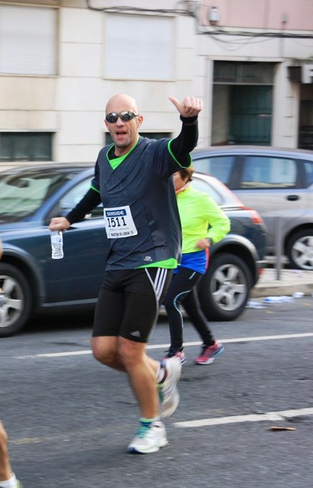 Campo-Grande, Lumiar, Alvalade XXI, Telheiras, continuo leve, subo "a direito", não custa e mantenho o ritmo. Apoio, quase sempre estrangeiro, sempre animado. Retribuo, agradeço, "Danke", "Merci", "Thank You", OBRIGADO!!!